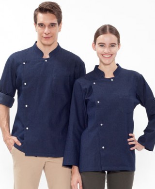 SKO-130 청지 데님 싱글단추 스넵ㅡㅡ(긴팔/칠부겸용) > 조리복