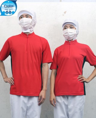 SW-164 반팔 적색 지퍼 차이나카라ㅡ(남녀공용 위생티) > 위 생 복
