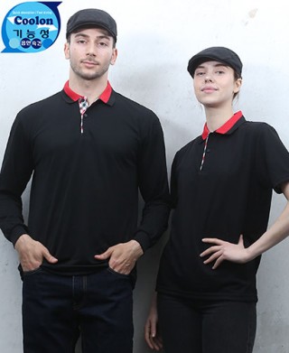 클론원단으로 카라에 이중 배색을 주어 멋스럽게 하였으며 각종 행사및 단체티 서빙용 스텝들의 티셔츠로 많이 나가며 분위기에 알맞는 배색으로 컨셉을 잡으셔도 좋을 듯 합니다.