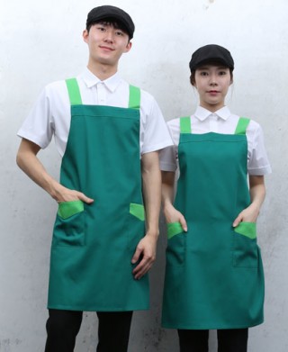 SAP-731 초록 어깨끈 배색 앞치마 ㅡㅡ ◐ 면혼방 ◀ 요약정보 및 구매