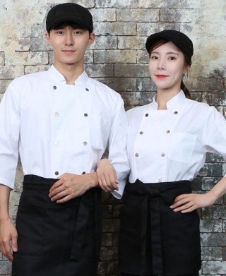 SKO-708-2 화이트 더블 스냅버튼 7부 > 조리복