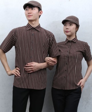 SY-743 엣지 커피 스트라이프ㅡㅡㅡ반팔 > 셔츠/서빙복