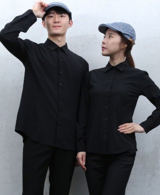 SY-813 남녀 블랙 무지 셔츠 ㅡㅡ긴팔 > 셔츠/서빙복