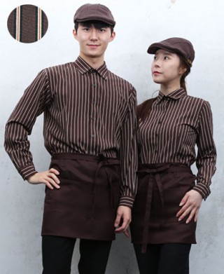 SY-811 엣지 커피 스트라이프 셔츠 ㅡ 긴팔 > 셔츠/서빙복