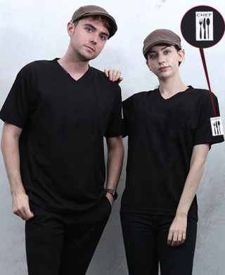 ST-6400 V넥 검정 왼팔 쉐프마크인쇄 > 라운드티셔츠