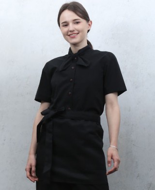 SB-511 블랙 무지 리본브라우스 > 셔츠/서빙복