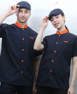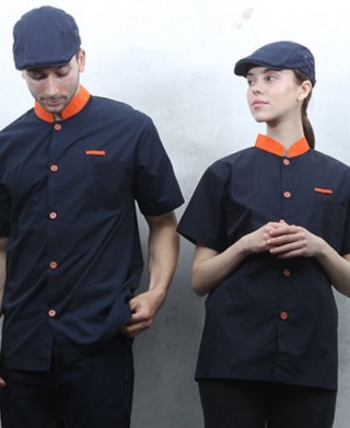 SKO-1826 곤색오렌지띠 배색 싱글단추 조리복 > 조리복