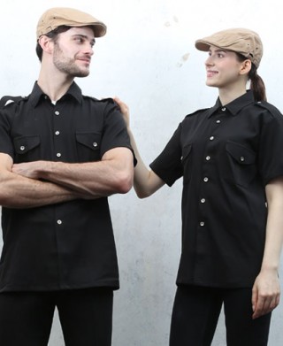 SY-890 블랙 무지 사파리 반팔 남방 ㅡㅡ [남녀공용] > 셔츠/서빙복