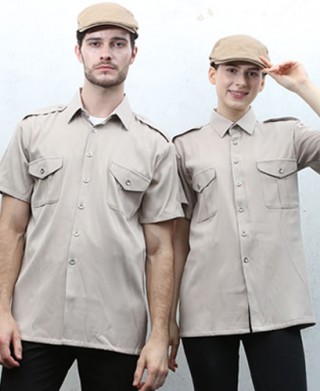 SY-891 베이지 무지 사파리 반팔 남방 ㅡㅡ [남녀공용] > 셔츠/서빙복