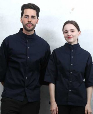 SKO-166-3 네이비 베이직 스탠딩카라 칠부조리복 > 조리복