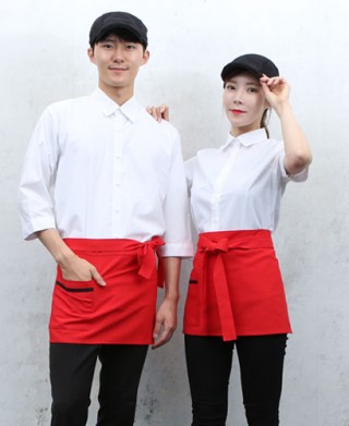 폴리100% 살짝 두꺼운 폴리원단을 사용하여 내구성이 좋으며 카페 주방또는 홀 등 잘 어울리는 곳에서 착용가능합니다.