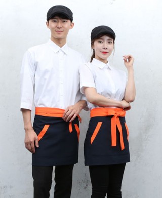 폴리100% 살짝 두꺼운 폴리원단을 사용하여 내구성이 좋으며 카페 주방또는 홀 등 잘 어울리는 곳에서 착용가능합니다.