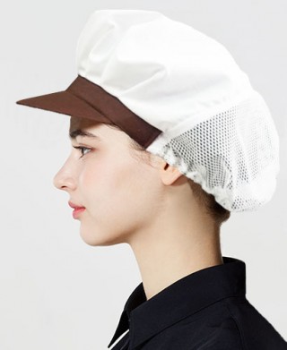 면혼방 T/C 국내제작형으로 챙이 갈색으로 되어있고 뒤에는 반망사형식 으로 4계절쓰기 용이합니다.식품공장,식당,조리용,휴게소판매등에 쓰입니다.