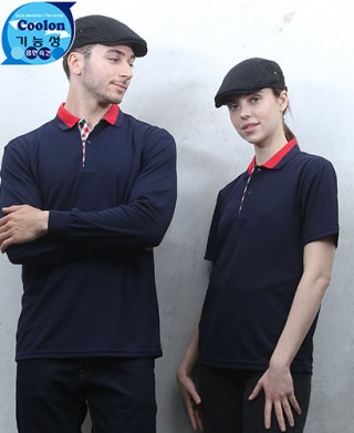ST2-49 곤색 기능성 애리배색 체크ㅡㅡ (주머니 없음) > 티셔츠