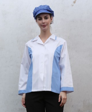 20수 면혼방 폴리 65% 면 35% 상의 배색으로 포인트를 주었습니다. 식품회사, 주방, 급식실등에서 착용하시면 좋습니다.