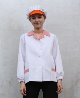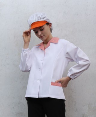 SHA-641-1 20수 주황 체크카라 위생복 > 위 생 복