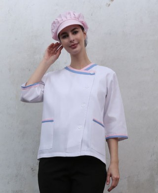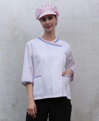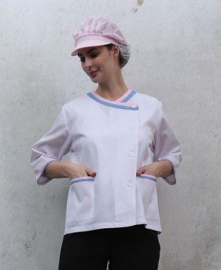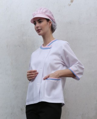 면혼방 30수 t/c 입니다. 두줄띠 배색으로 포인트를 준 제품입니다. 주방,급식실, 식품회사등 착용하시면 좋습니다.