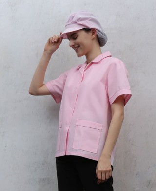 SHA-68 분홍 체크 파이핑포인트 반팔 > 위 생 복