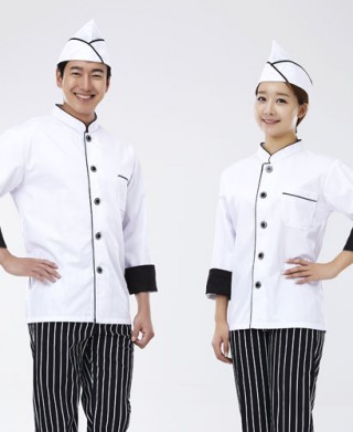 SCO-016 검정 띠 백색 조리복 (칠부,긴팔 겸용) > 조리복