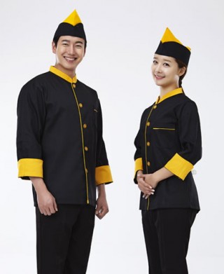 SCO-021 노랑 배색 검정 조리복 (칠부,긴팔 겸용) > 조리복