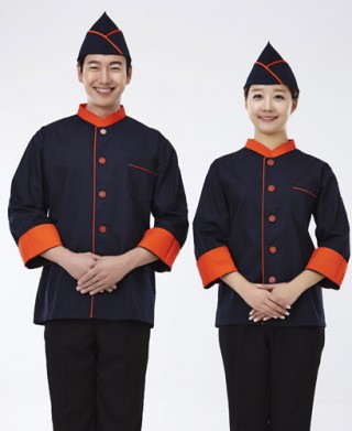 SCO-022 주황 배색 곤색 조리복 (칠부,긴팔 겸용) > 조리복
