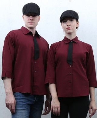 SY-366 NEW 칠부 자주 검넥타이 포인트ㅡㅡ(남여공용사이즈) > 셔츠/서빙복