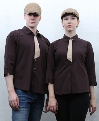 SY-713 NEW 커피 베이지넥타이포인트ㅡㅡ 칠부(남여공용사이즈) > 셔츠/서빙복
