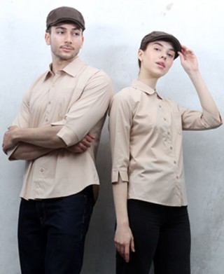SY-719 NEW 베이지 카라 칠부 셔츠 > 셔츠/서빙복
