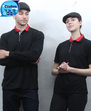 클론원단으로 카라에 이중 배색을 주어 멋스럽게 하였으며 각종 행사및 단체티 서빙용 스텝들의 티셔츠로 많이 나가며 분위기에 알맞는 배색으로 컨셉을 잡으셔도 좋을 듯 합니다.