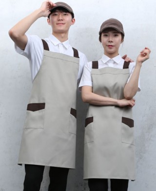 SAP-740 베이지/커피 배색 앞치마 (면혼방) 요약정보 및 구매