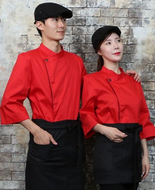 SKO-711-5 레드/네이비 띠배색 원버튼 스냅 7부 > 조리복
