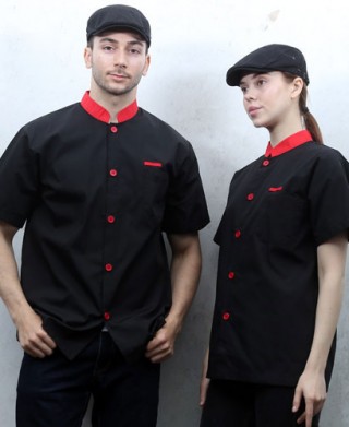 SKO-1825 검정적띠 배색 싱글단추 조리복 > 조리복