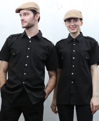 SY-890 블랙 무지 사파리 반팔 남방 ㅡㅡ [남녀공용] > 셔츠/서빙복