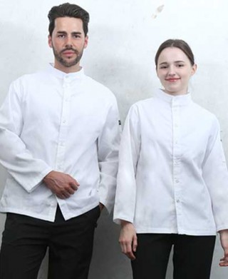 SKO-165-1 화이트 베이직 스탠딩카라 긴팔조리복 > 조리복