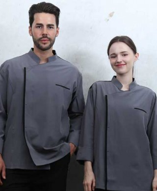SKO-4247 그레이 슬림핏 고신축 스판조리복 칠부/긴팔 겸용 > 조리복