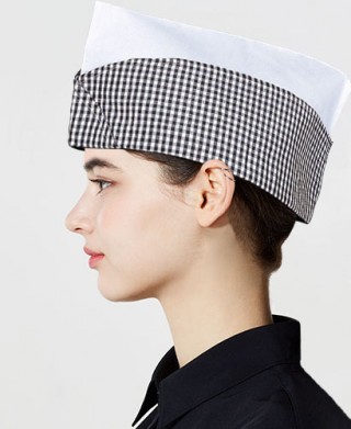 헬로모자 (뒤쪽에 사이즈 조절가능) / 주방에서는 조리모로 홀에서는 서빙용 모자로 사용 가능합니다. 깔끔한 디자인으로 멋스럽게 하였습니다.