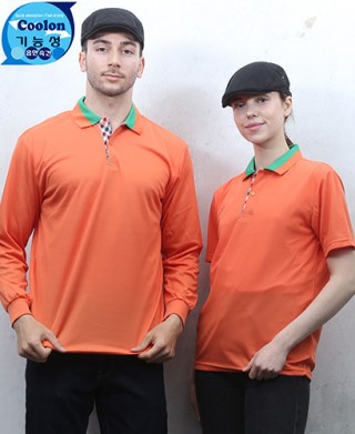 ST2-49 오렌지 기능성 애리배색 체크ㅡㅡ(주머니 없음 코발트/오렌지) > 티셔츠