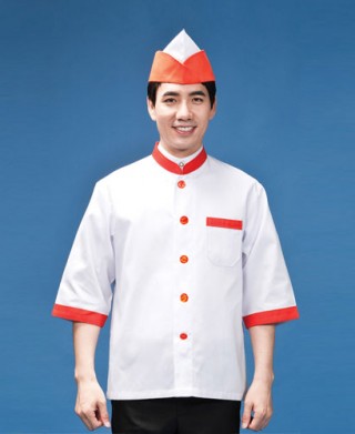 ※ 모자, 하의는 별도구매 상품입니다. 오렌지 배색으로 포인트를 주었습니다. 주방, 급식실, 식품회사등에서 착용하시면 좋습니다.