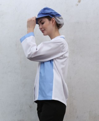 20수 면혼방 폴리 65% 면 35% 상의 배색으로 포인트를 주었습니다. 식품회사, 주방, 급식실등에서 착용하시면 좋습니다.
