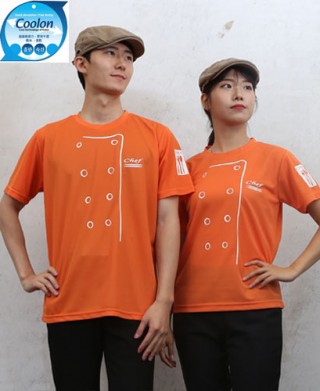 기능성원단사용하여 가볍고 시원하며 일시적으로 또는 티셔츠 입고 조리하시는 분들에게 쿡복처럼 모양을 낸 티셔츠입니다.