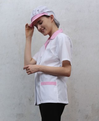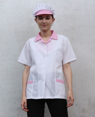SHA-116 반팔 핑크체크 쿨스판 위생복 > 위 생 복