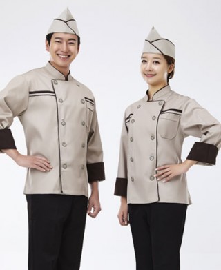 SCO-012 갈색 띠 베이지 조리복 (칠부,긴팔 겸용) > 조리복