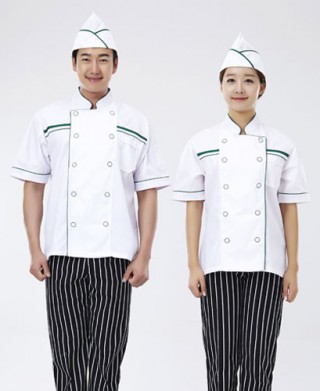 SCO-62 녹색 띠 백색 반팔 조리복 > 조리복